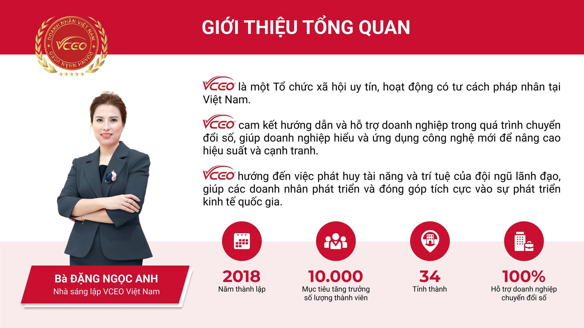 Trong bối cảnh kinh tế số và công nghệ đang tái định hình toàn diện cách doanh nghiệp vận hành, VCEO xác định chuyển đổi số không còn là lựa chọn, mà là năng lực sống còn của mỗi doanh nghiệp. Với tinh thần tiên phong và trách nhiệm cộng đồng, VCEO cam kết đồng hành, hỗ trợ 100% hội viên trong hành trình chuyển đổi số, từ tư duy chiến lược, nền tảng công nghệ, truyền thông số đến tối ưu vận hành và kết nối thị trường.