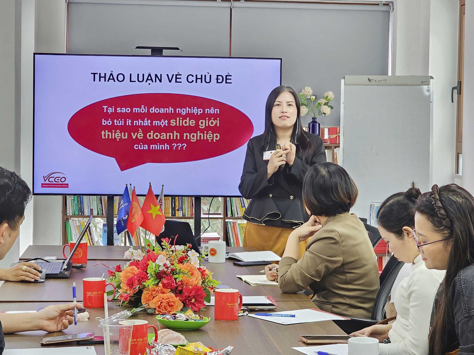 Tại chương trình VCEO Coffee Talk số 61, chương trình được dẫn dắt bởi Doanh nhân Đặng Ngọc Anh – Nhà sáng lập, Chủ tịch Cộng đồng Doanh nhân Việt Nam VCEO. Với hơn 18 năm kinh nghiệm trong lĩnh vực công nghệ, truyền thông và huấn luyện lãnh đạo, chị mang đến những bài học thực tiễn và sâu sắc giúp doanh nghiệp xây dựng bài thuyết trình 8 phút ấn tượng – công cụ kết nối và truyền thông thương hiệu không thể thiếu.