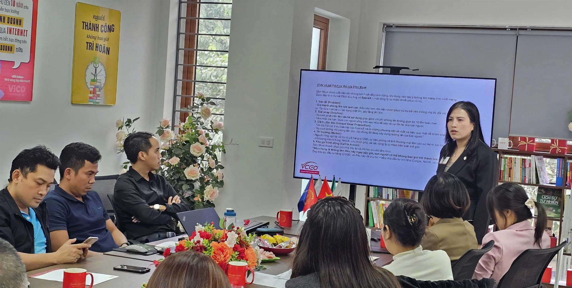 Phần cuối chương trình, các doanh nhân được trực tiếp thực hành bài thuyết trình 8 phút của chính mình, với sự hướng dẫn, góp ý tận tâm từ chị Đặng Ngọc Anh và các chủ doanh nghiệp thành viên VCEO có mặt tại chương trình. Không khí buổi chia sẻ trở nên sôi nổi và đầy cảm hứng khi mỗi doanh nhân tự tin thể hiện bản thân, giới thiệu doanh nghiệp bằng sự tự hào và chuyên nghiệp.