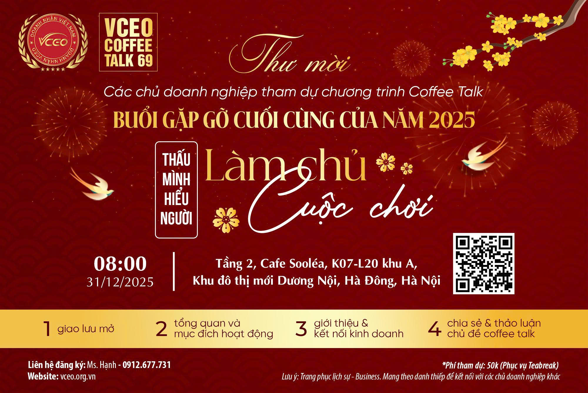 VCEO Việt Nam tin tưởng rằng sự tham dự của Quý Anh/Chị sẽ góp phần tạo nên một buổi Coffee Talk chất lượng, sâu sắc và giàu giá trị thực tiễn, đồng thời lan tỏa tinh thần Kết nối – Hợp tác – Phát triển bền vững trong cộng đồng.