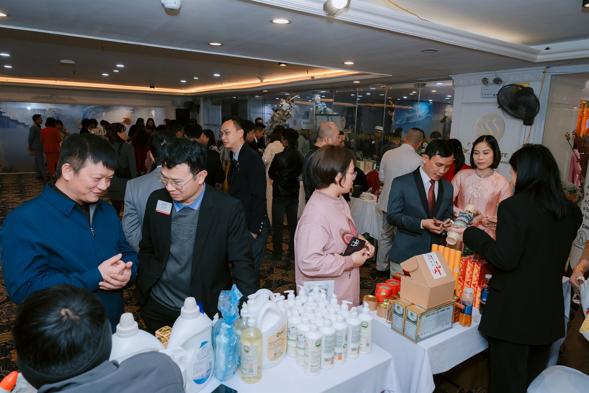 Ngay từ đầu chương trình, khu vực trưng bày sản phẩm, dịch vụ của các doanh nghiệp thành viên đã trở thành điểm kết nối sôi động, mở ra nhiều cơ hội hợp tác thiết thực. Không khí sự kiện thêm phần trang trọng và rực rỡ với hình ảnh doanh nhân trong trang phục vest lịch lãm, áo dài truyền thống, biểu trưng cho tinh thần Văn minh – Bản sắc – Hội nhập của cộng đồng doanh nhân Việt Nam.