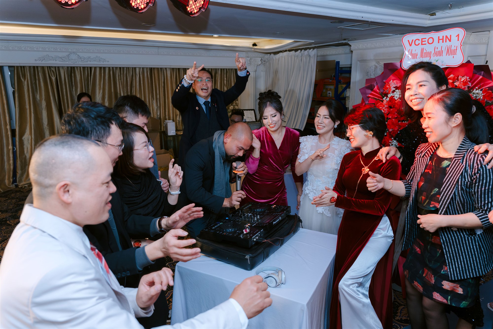 Doanh nhân Trần Việt - CEO Công ty Hoàng Sa (Thành viên VCEO HN6) chơi DJ chuyên nghiệp trong đêm tiệc.