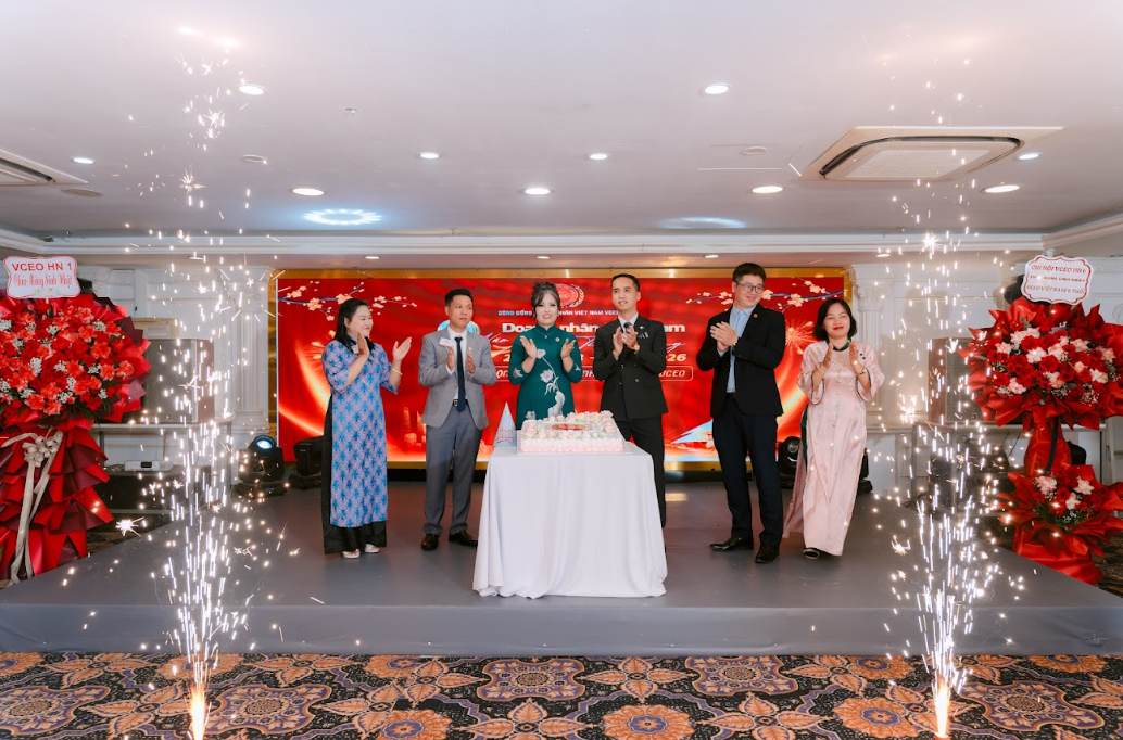 Không gian buổi tiệc trở nên bùng nổ với khoảnh khắc Chúc mừng sinh nhật VCEO 8 tuổi (22/01/2018 - 22/01/2026). Hành trình 8 năm qua là minh chứng cho sức mạnh đoàn kết và giá trị bền vững mà VCEO đã mang lại cho hàng ngàn doanh nghiệp thành viên. Tiếng nổ sâm-panh và bài ca chúc mừng sinh nhật vang lên trong niềm tự hào của tất cả các thành viên có mặt tại khán phòng.